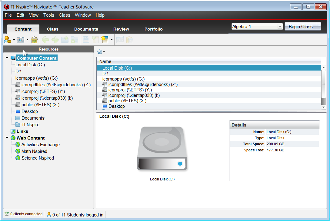 . Use these tabs to switch between the Content, Class, Documents, Review, and Portfolio Workspaces.