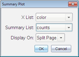 | 5. | If necessary, use Tab and the arrow keys to select the correct lists for X List and Summary List. |