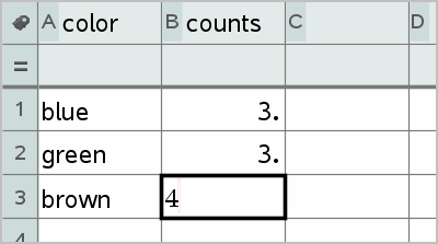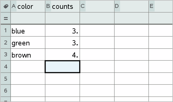 | 2. | Create the summary list. For this example, name the list “counts” and type the total count for each of the eye colors. |