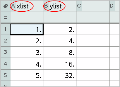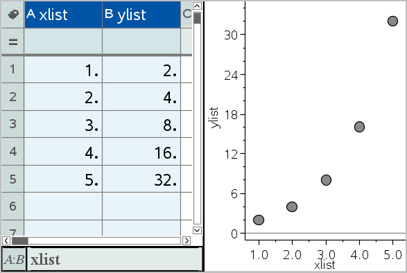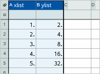 You can easily create a dot plot of the data in one column or a scatter plot of two adjacent columns by using the Quick Graph feature. This feature displays the graphed data using the Data & Statistics application.