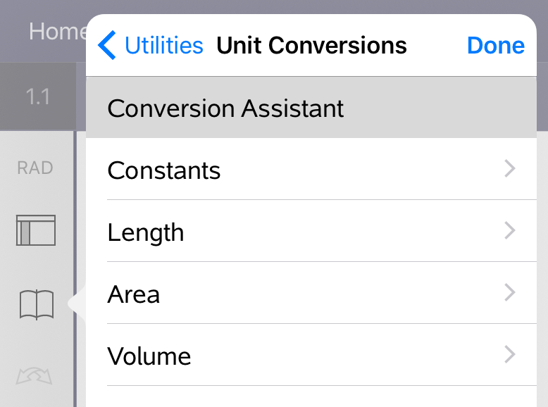 | 2. | Tippen Sie auf Hilfsfunktionen , anschließend auf Einheitenumrechnungen. |