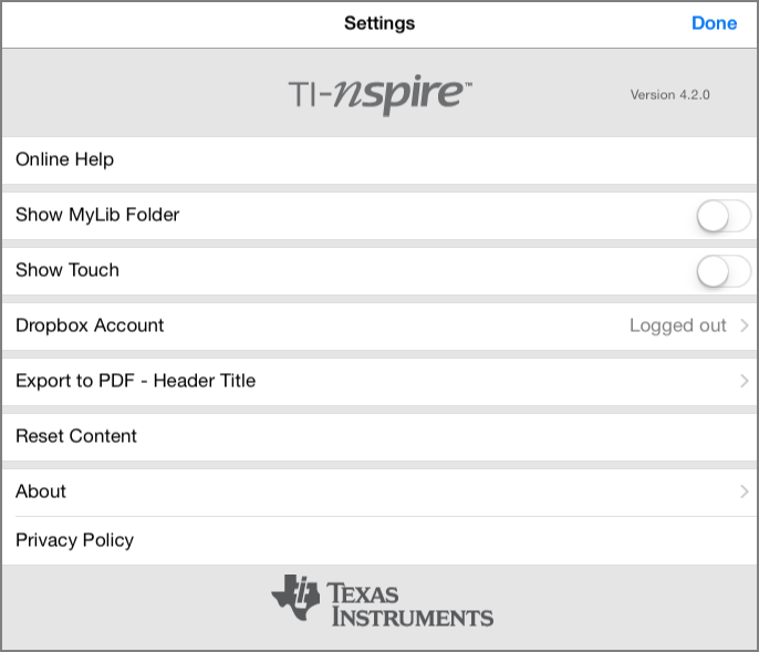 Die Reset Content-Option verschafft Ihnen die Möglichkeit, einen iPad® für einen Test oder ein Quiz vorzubereiten, indem alle vom User geschaffene TI-Nspire™-Dokumente und Ordner entfernt werden.