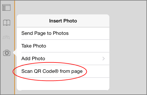 Sie können QR Code®-Bilder zu einer Notes Page hinzufügen. Ein Bild pro Seite ist für zuverlässiges Scannen empfehlenswert.