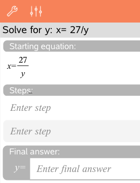 Der Lehrer kann Sie möglicherweise dazu auffordern, für Ihre Antwort Arbeitsschritte zu zeigen. In diesem Fall stellt der Lehrer eine Startgleichung bereit und der Antwortbereich enthält Abschnitte, in denen Sie Ihre Schritte und die endgültige Antwort eingeben können.