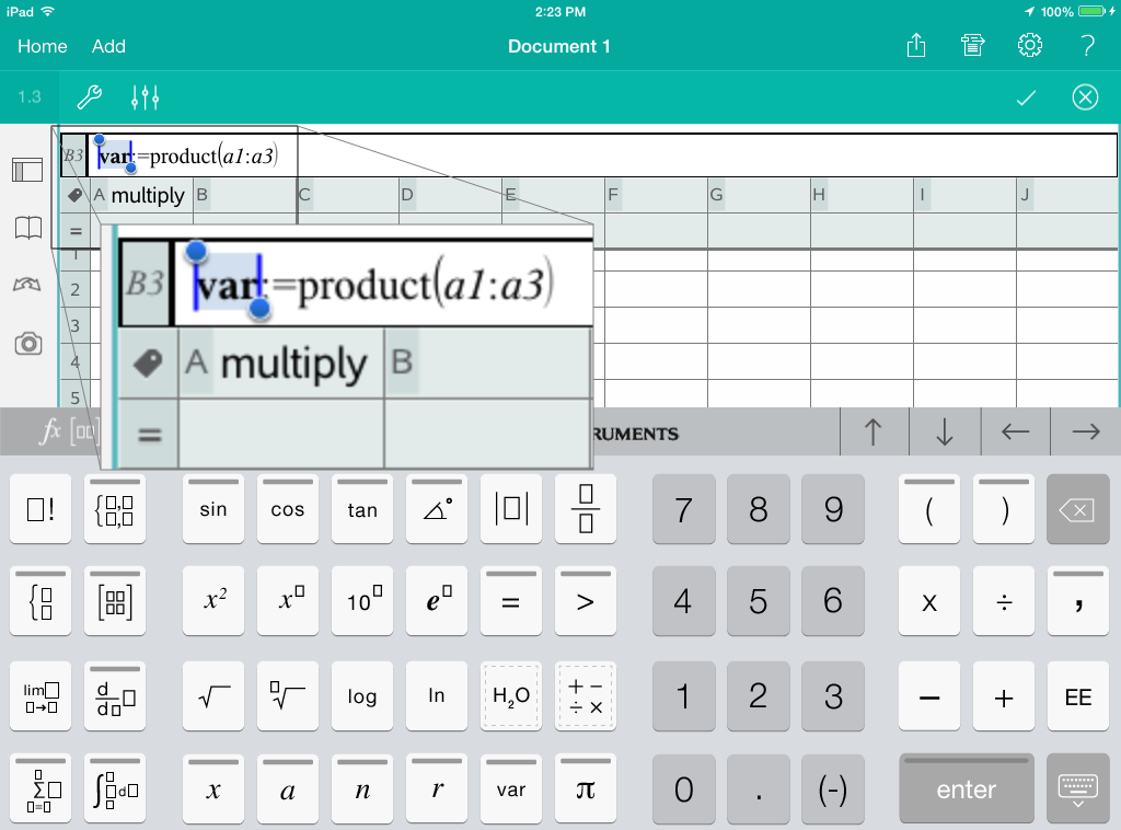 In die Zelle wird eine Formel mit var als Platzhalter für einen Variablennamen eingefügt.