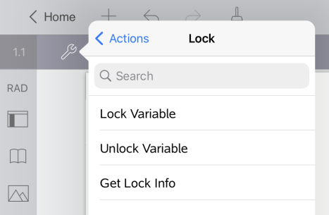 Las variables bloqueadas muestran un icono de candado en la lista del menú de variables.