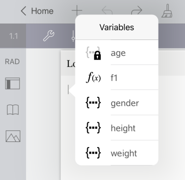 | 4. | Haga un punteo en Bloquear variable para seleccionar la función e insertarla en la línea de ingreso. |