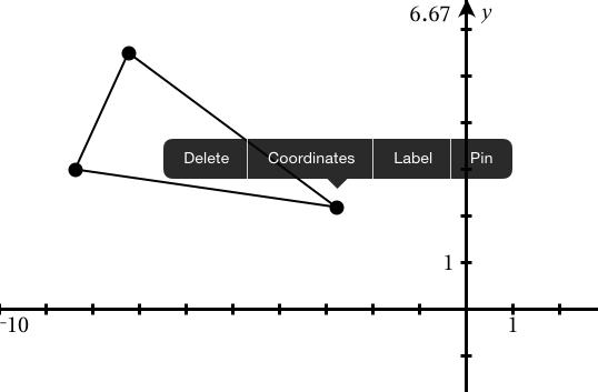The Graphs application can identify and label the coordinates of any existing point, provided the point was created in the Graphs application.