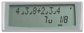 Calcolatrice essenziale a batteria con display a due righe che combina funzioni statistiche e scientifiche avanzate per applicazioni matematiche e scientifiche per la scuola superiore.
