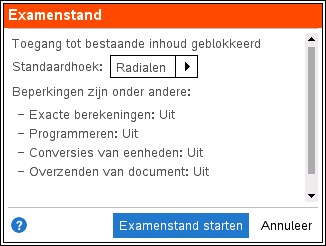Controleren of de examenstand is ingeschakeld (of uitgeschakeld) kan op de volgende manieren, waarbij één van deze voldoende is: