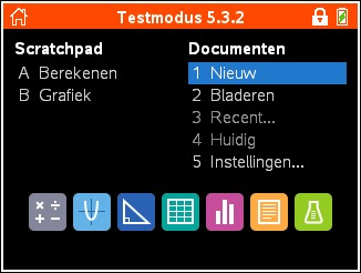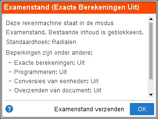 Bij het aanzetten van de TI-Nspire™ CX, TI-Nspire™ CX II-T of TI-Nspire™ CX II-T CAS verschijnt direct de mededeling: “Deze rekenmachine staat in de modus Examenstand.“