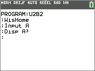 Begin je programma met de opdracht WisHome uit het menu I/O van de toets [PRGM]. Denk eraan om op [ENTER] te drukken aan het einde van de regel.