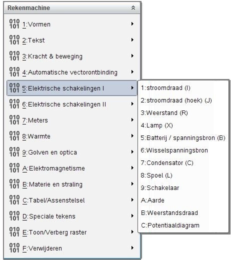 Als u de TAB-toets tegelijk met het tekstveld indrukt, worden aan de tekst diverse pijlen toegevoegd, die bijvoorbeeld de stroomrichting in een elektrische schakeling kan aangeven.
