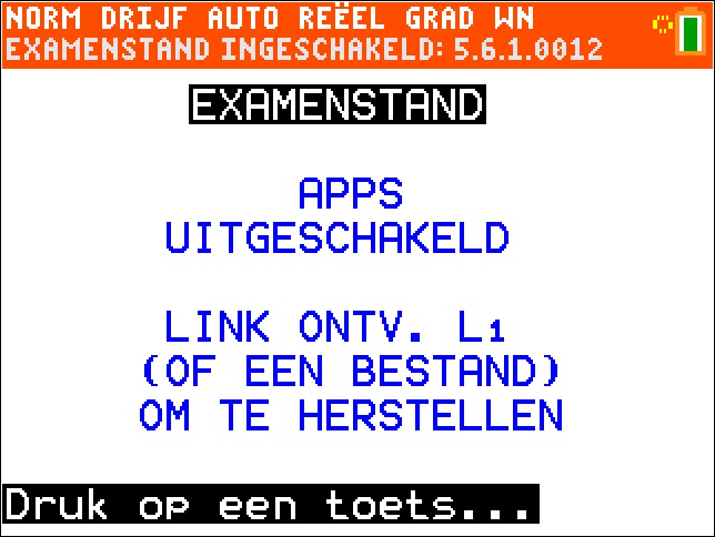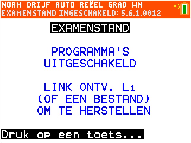 4. Wacht tot je het scherm ziet met EXAMENSTAND.
