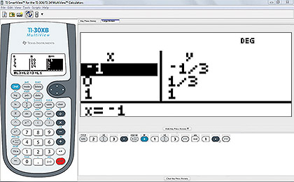 Programvaren kan simulere TI-30X Pro MathPrint™, TI-30XS MultiView og TI-30XB MultiView og gjøre det mulig for læreren å vise et interaktivt bilde av kalkulatorens skjerm og tastatur for hele klassen.