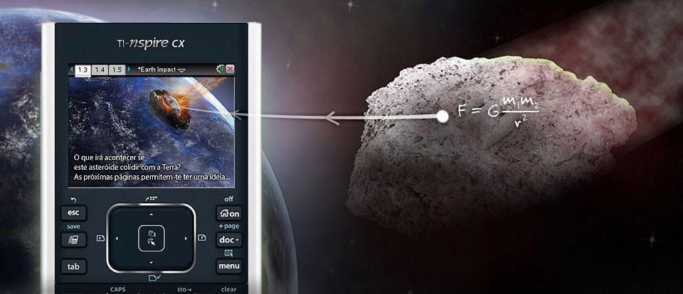 Impacto na Terra, é uma atividade para TI-Nspire, baseada na Ciência e na Matemática por trás de épicos filmes de suspense de Hollywood sobre desastres no espaço. Esta atividade promove a exploração e a compreensão dos princípios principais das Ciências em que Engenheiros, Cientistas, Astrónomos e Matemáticos se apoiam todos os dias.