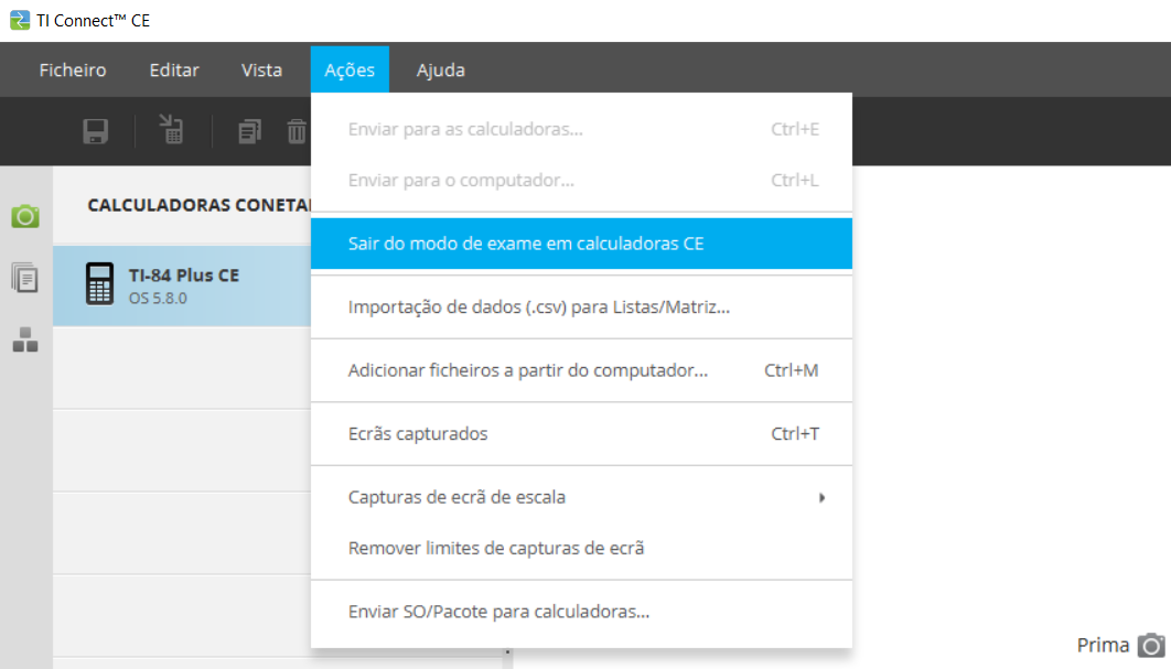 3. A seguir, basta aceder à opção “Sair do modo exame” do menu “Ações”: