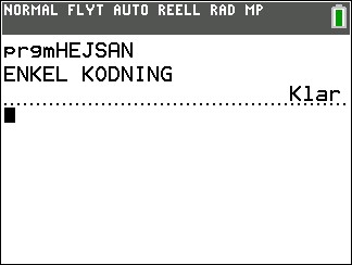 Välj nu 8:ClrHome. - Avsluta editorn och kör programmet. Du kommer nu att se din text på en ”ren” skärm.