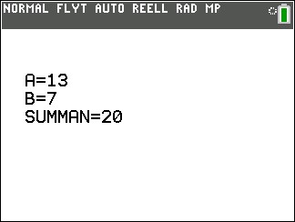 Ditt program är nu färdigt! Låt oss köra det. Med TI Basic behöver man inte spara programmet. Det sparas direkt när du skriver in. Det är därför som man alltid börjar med att namnge programmet.