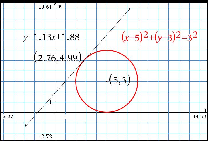 I slutet av aktiviteten så finns en uppgift där man drar en tangent från en viss punkt till en cirkel och man ska bestämma tangeringspunkten.