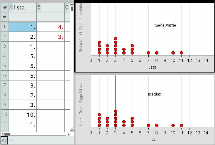 I denna aktivitet så undersöker vi på ett dynamiskt sätt hur olika statistiska mått påverkas när man ändrar enskilda värden i en datauppsättning.