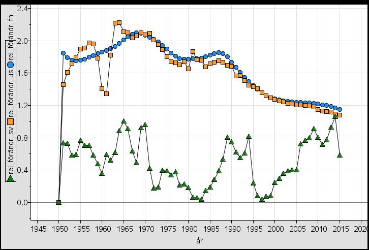 I slutet av aktiviteten arbetar vi med verkliga data som är importerade till kalkylarket. Det handlar om befolkningsstatistik och vi gör bl.a. beräkningar på befolkningsförändringar.