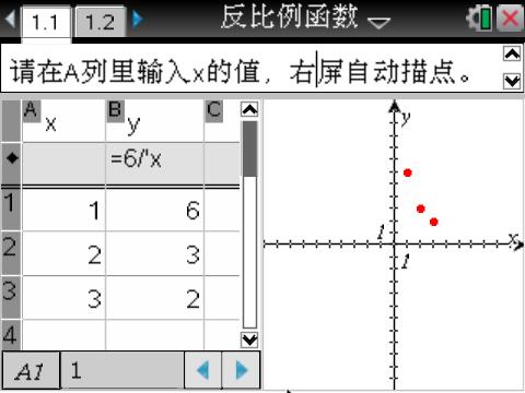 利用TI-Nspire CX图形计算器学习有关反比例函数的相关性质。