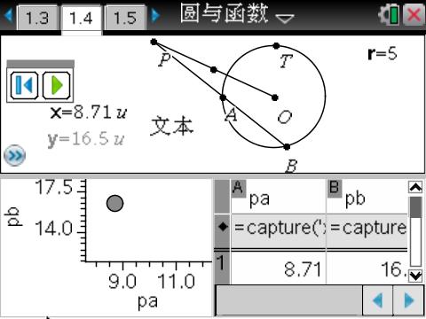 利用TI-Nspire CX图形计算器研究圆与函数的问题。