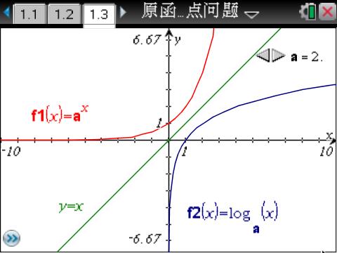 利用TI-Nspire图形计算器讲解原函数与反函数的交点问题。