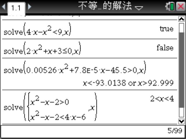 利用TI-NspireTM图形计算器强大的代数功能可以来验证不等式解的正确性。